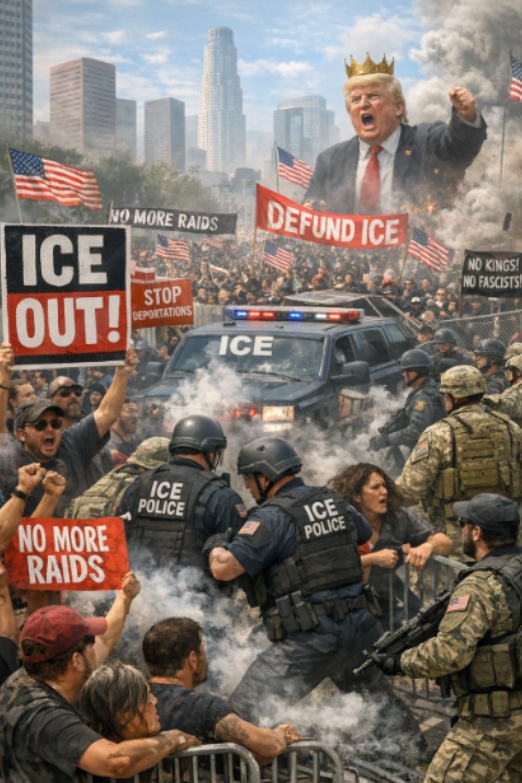 2025년 6월 6일, ICE가 로스앤젤레스 일대에서 대규모 불법 이민자 단속을 실시하자 항의 시위가 발생했다. 국토안보부는 일주일간의 작전으로 총 118명을 체포했으며, 갱단원과 강력범죄 전과자들이 포함됐다고 밝혔다. 하지만 시위는 샌프란시스코, 오클랜드, 새크라멘토, 덴버 등 미국 전 지역으로 확산됐으며, 대규모 시위가 연일 이어졌다. 트럼프 대통령은 주지사의 동의 없이 주방위군을 동원해 강경 진압에 나섰고, 이는 헌법 위반 논란을 불러일으켰다. 6월 14일에는 트럼프 대통령의 79번째 생일을 맞아 전국 2,000여 곳에서 반트럼프 시위에 수백만 명이 참여했다. 뉴욕에서는 5만 명, 필라델피아에서 10만 명이 참여하는 등 대규모 ‘노 킹스(No Kings)’ 시위가 벌어졌다.
